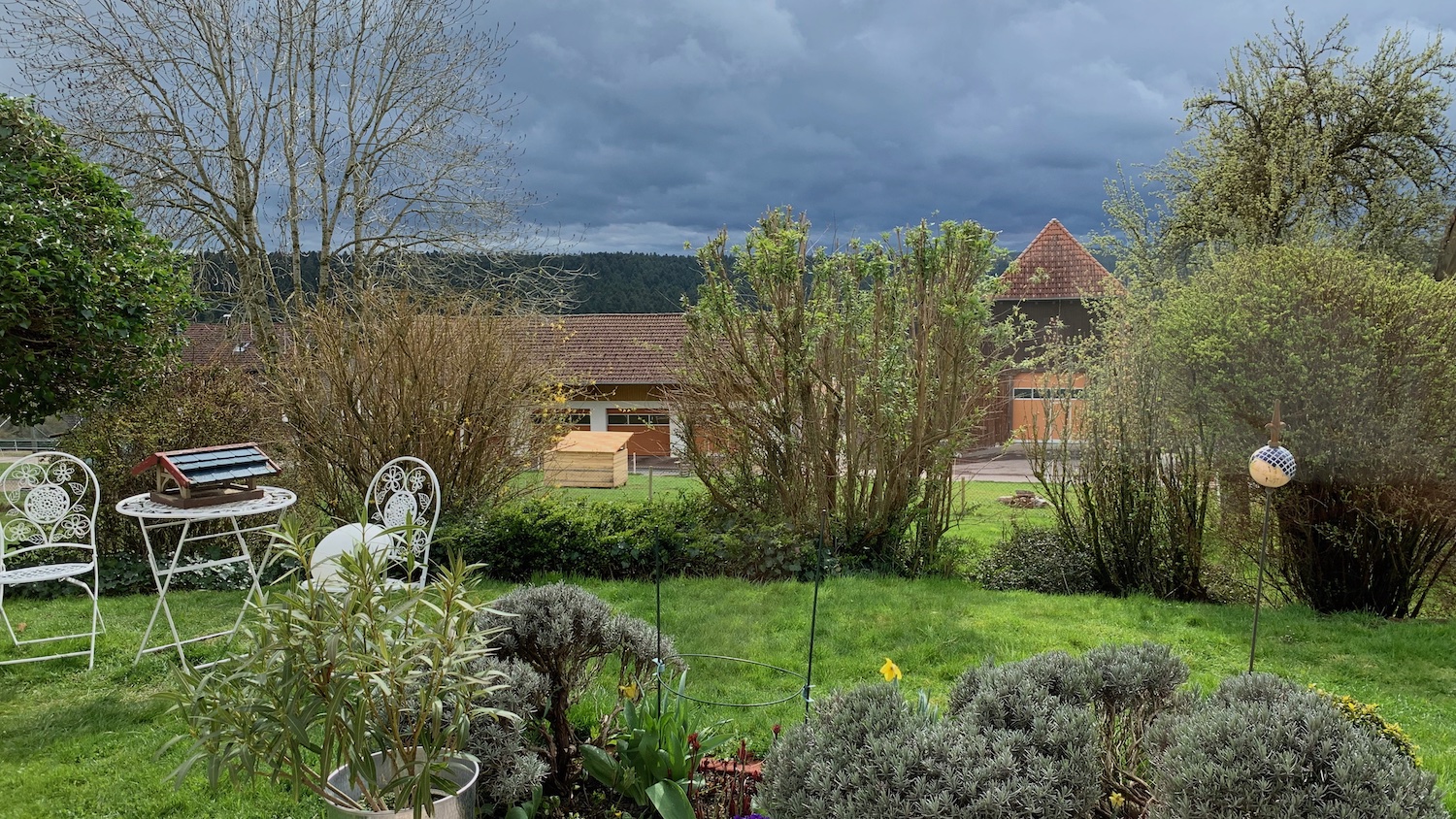 Die Sonne versuchte sich zwischen den dunklen Wolken durchzukämpfen, aber das hatte nur ein paar Minuten geklappt. Danach ging es mit Regen und Wind weiter. Für den Rest des Tages blieb ich in meinem Sessel, habe brav Erkältungstee getrunken und mich ausgeruht.