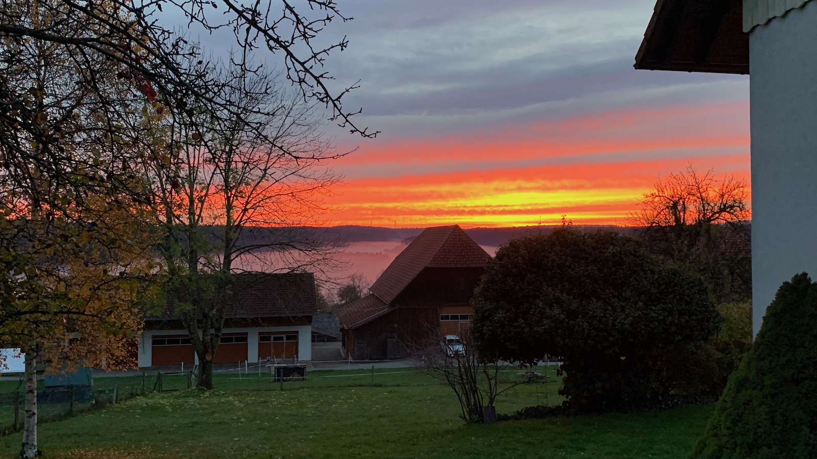 Als ich nach dem Laufen zu Hause war, durfte ich noch ein schönes Abendrot vom Garten aus bewundern.